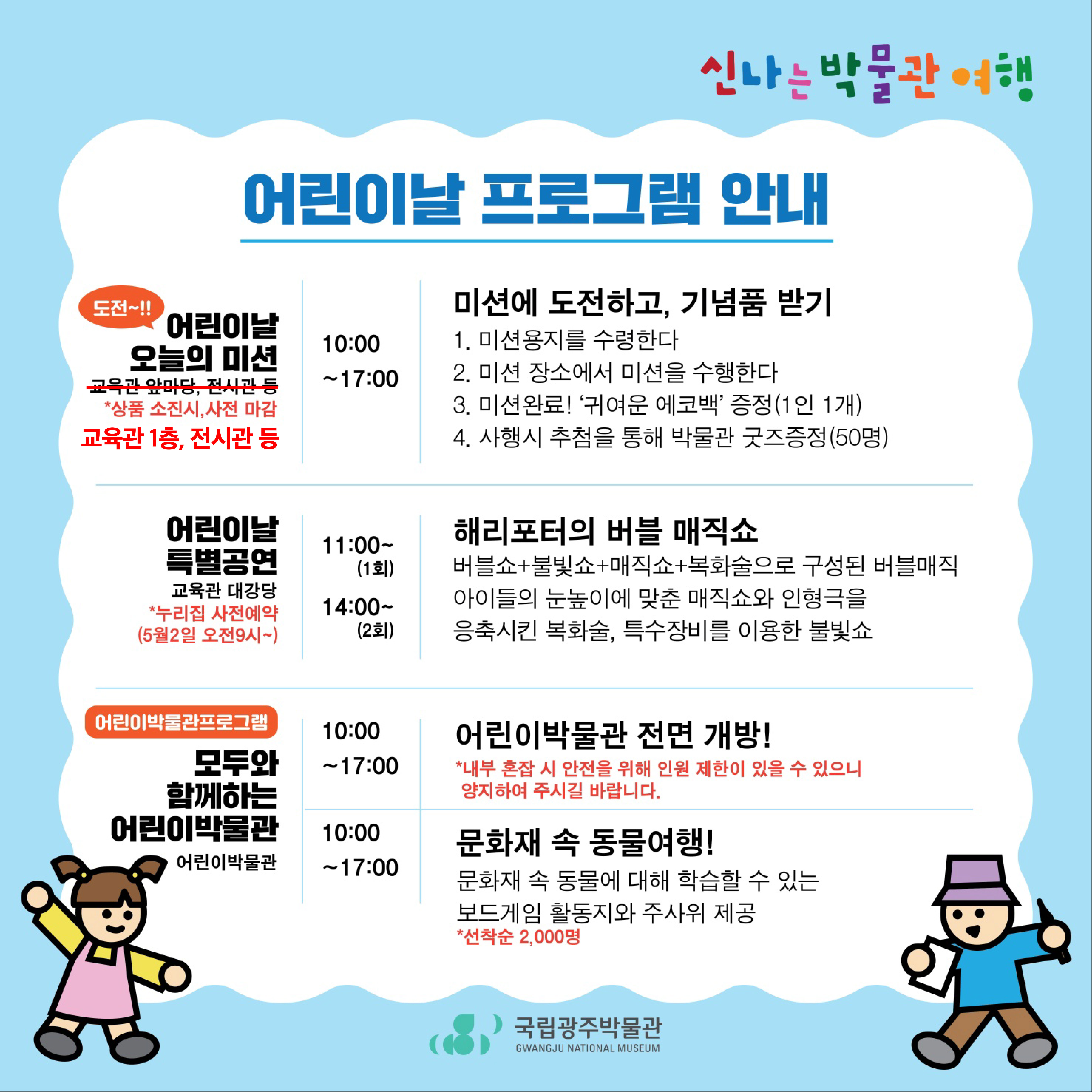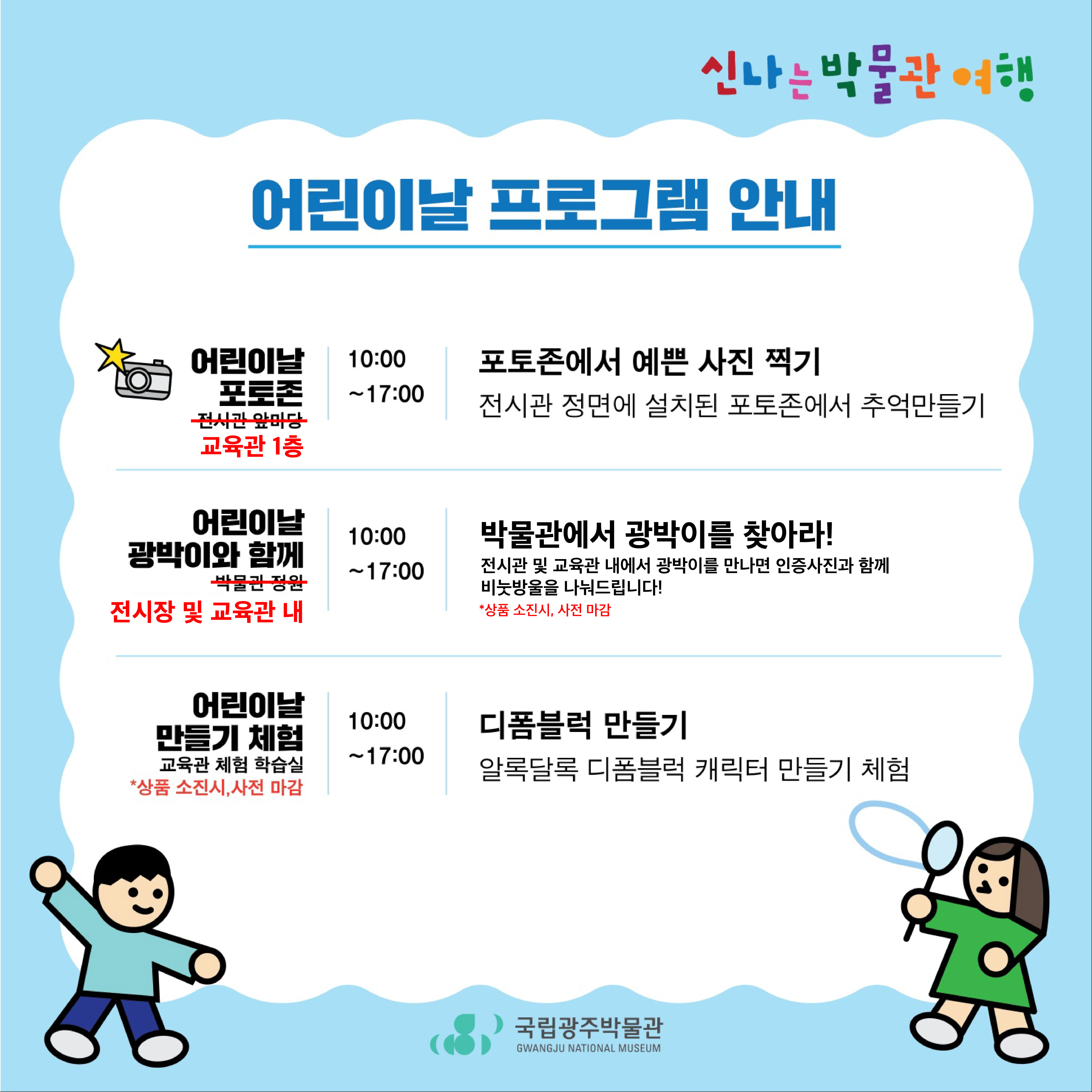 "[문화행사] 101회 어린이날 오지는 박물관 여행(우천으로 인한 장소 변경)"